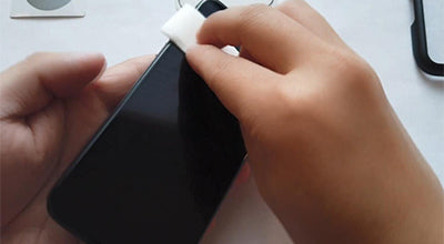 The first thing we need to do is to clean up our phone screen. Wipe with an alcohol cloth first, then a dry cloth, and if there are fine dust or particles at the end, use a sticker.